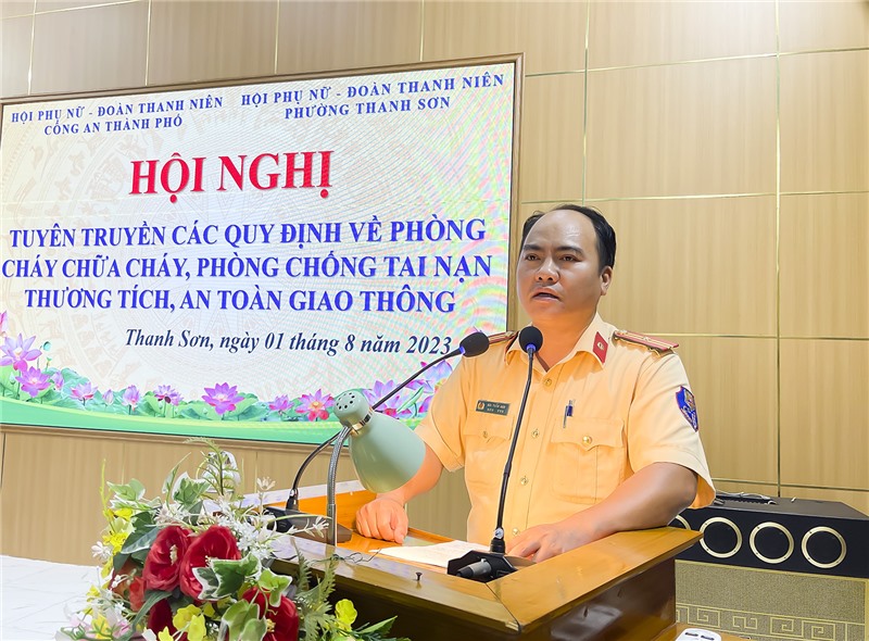Tối ngày 01/08, Đoàn TNCS Hồ Chí Minh và Hội LHPN phường Thanh Sơn phối hợp với Chi đoàn thanh niên và Hội phụ nữ Công an thành phố tổ chức Hội nghị tuyên truyền các quy định về PCCC, ATGT, Luật An ninh mạng và các quy định của Luật xuất nhập cảnh liên quan đến người nước ngoài.