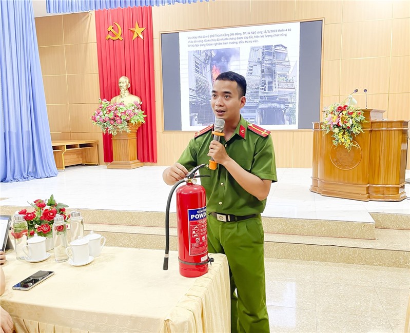 Các đại biểu cũng đã được tuyên truyền các nội dung liên quan đến quy định của pháp luật về PCCC; hướng dẫn các kỹ năng thoát hiểm khi xảy cháy, cách nhận biết và sử dụng các loại bình chữa cháy.