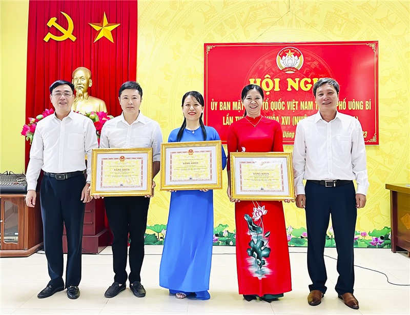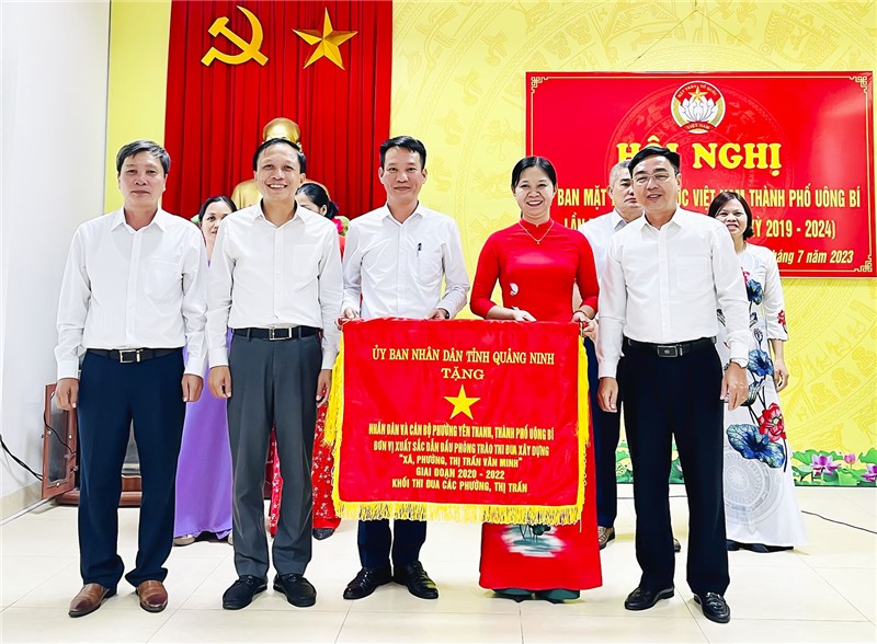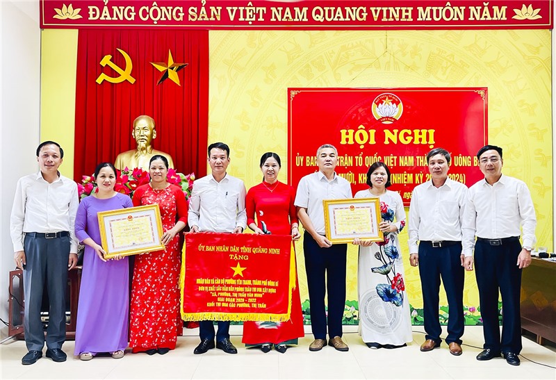 Nhân dịp này, thừa ủy quyền UBND tỉnh, lãnh đạo Thành ủy, UBND, Uỷ ban MTTQ thành phố đã trao Cờ thi đua cho cán bộ, nhân dân phường Yên Thanh, trao Bằng khen cho cán bộ và nhân dân phường Trưng Vương và phường Nam Khê, trao Bằng khen cho 3 cá nhân có thành tích xuất sắc trong phong trào thi đua xây dựng “Xã, phường, thị trấn văn minh” trên địa bàn tỉnh giai đoạn 2020-2022.