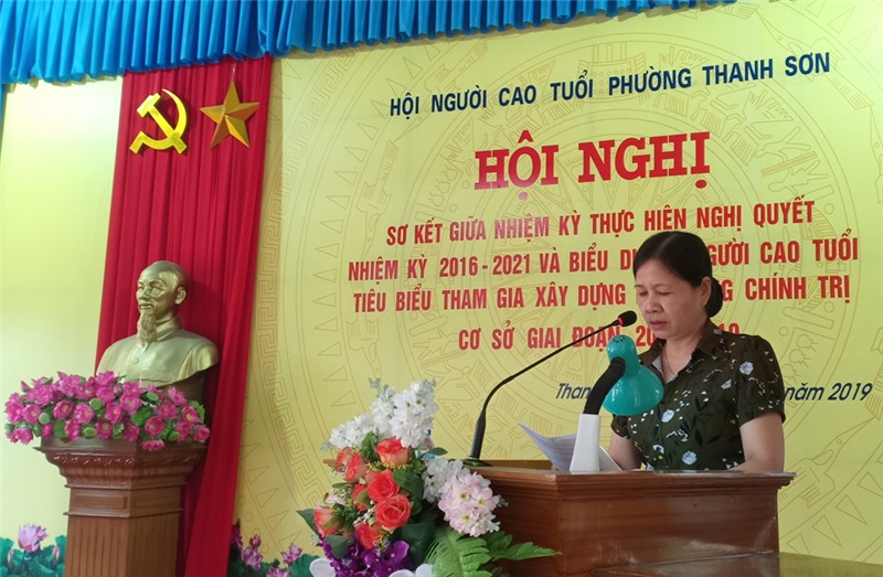 Sáng 27-6, Hội Người cao tuổi phường Thanh Sơn tổ chức Hội nghị biểu dương Người cao tuổi tiêu biểu tham gia xây dựng hệ thống chính trị cơ sở giai đoạn 2014- 2019, sơ kết giữa nhiệm kỳ 2016-2021 thực hiện Nghị quyết Đại hội Hội Người cao các cấp.