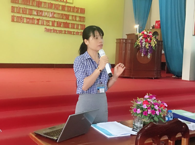 Chuyên viên Trung tâm Dịch vụ Kỹ thuật Nông nghiệp thành phố tuyên truyền các nội dung tại hội nghị.