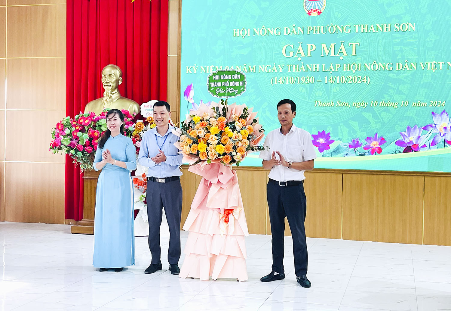 Chiều ngày 10/10, Hội Nông dân phường Thanh Sơn tổ chức Gặp mặt kỷ niệm 94 năm ngày thành lập Hội Nông dân Việt Nam 14/10 (1930 - 2024). Dự chúc mừng có lãnh đạo Hội Nông dân thành phố; lãnh đạo Đảng ủy, HĐND, UBND, MTTQ và các đoàn thể chính trị xã hội phường.