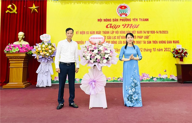 Chiều 12/10, Hội Nông dân phường Yên Thanh tổ chức Gặp mặt kỷ niệm 93 năm Ngày thành lập Hội nông dân Việt Nam 14/10 (1930-2023); ra mắt Câu lạc bộ “Nông dân với pháp luật”; tuyên truyền phòng ngừa các hoạt động lừa đảo, chiếm đoạt tài sản trên không gian mạng. Tới dự có đồng chí Phạm Ngọc Bích, Phó Chủ tịch Hội Nông dân thành phố; lãnh đạo Đảng ủy - HĐND-UBND-MTTQ và các đoàn thể phường.