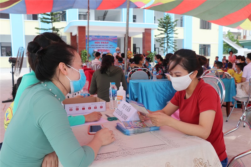 Trong chương trình hội thảo, rất đông phụ huynh quan tâm nghiên cứu để đăng ký học cho con.