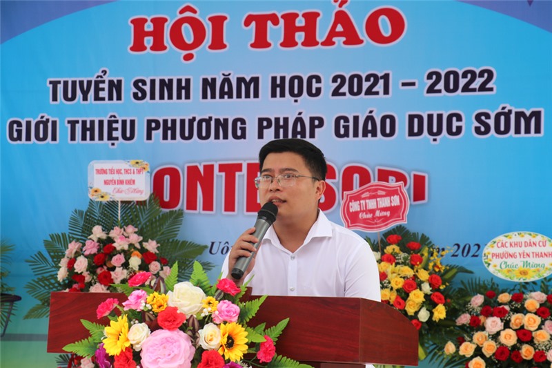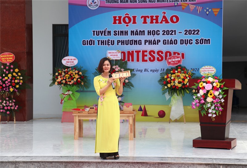 Sáng ngày 18/7, Trường Mầm non song ngữ Montessori Vân Anh tưng bừng tổ chức Hội thảo tuyển sinh năm học 2021-2022 và giới thiệu phương pháp giáo dục sớm Montessori. Đồng chí Nguyễn Đức Thành, UVBTV Tỉnh uỷ, Chủ nhiệm Uỷ ban Kiểm tra Tỉnh uỷ dự chúc mừng.
