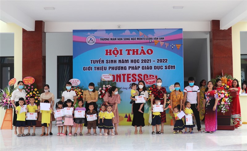 Trường Mầm non song ngữ Montessori Vân Anh sẽ chính thức bắt đầu hoạt động từ 01/8 và hiện đang tiếp tục tuyển sinh. Ngay trong chương trình hội thảo đã có trên 80 phụ huynh đăng ký cho con theo học. Tại đây, nhà trường cũng đã trao tặng học bổng cho 17 trẻ đầu tiên theo học tại trường.