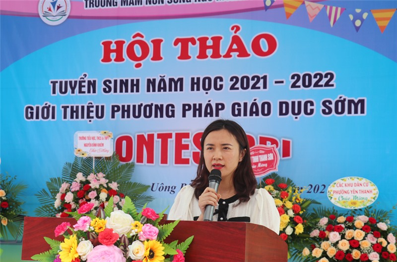 Cô Liên Hoàn, Hiệu trưởng nhà trường phát biểu tại hội thảo.