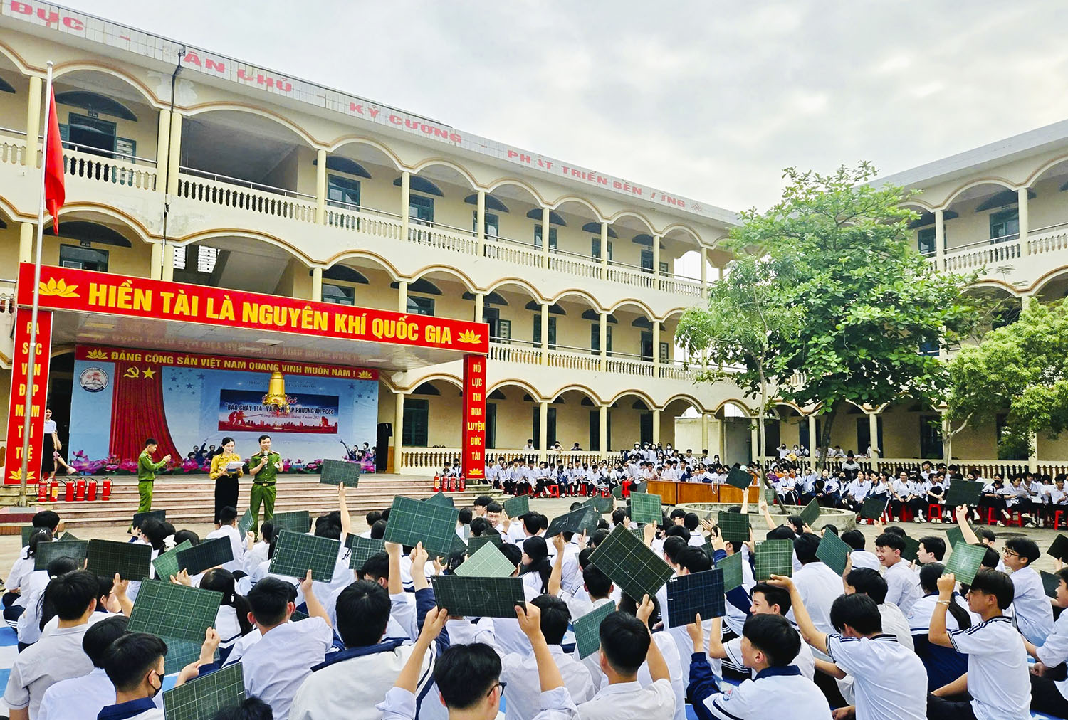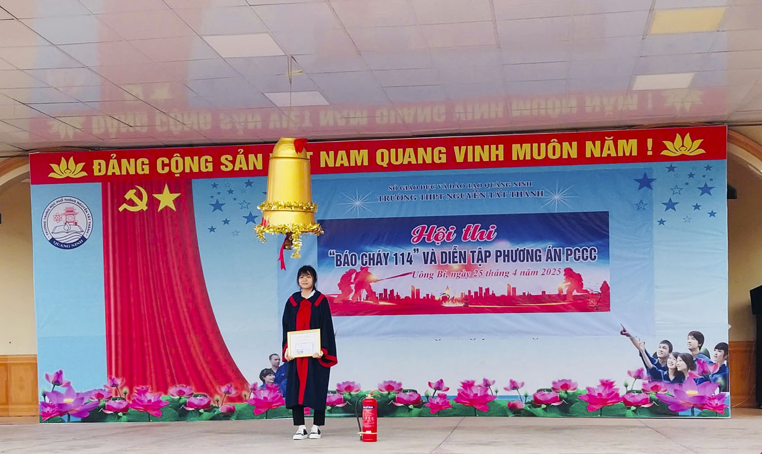 100 học sinh đại diện cho 3 khối lớp học của nhà trường đã tham gia Hội thi “báo cháy 114”. Với vốn kiến thức về phòng cháy, chữa cháy và cứu nạn, cứu hộ, các thí sinh đã xuất sắc trả lời các câu hỏi do Ban tổ chức đưa ra. Học sinh Nguyễn Thảo Uyên, lớp 10C5 giành giải Nhất hội thi. Trong chương trình, Phòng Cảnh sát PCCC và CNCH đã phối hợp với nhà trường tổ chức thành công thực tập phương án chữa cháy và cứu nạn, cứu hộ.