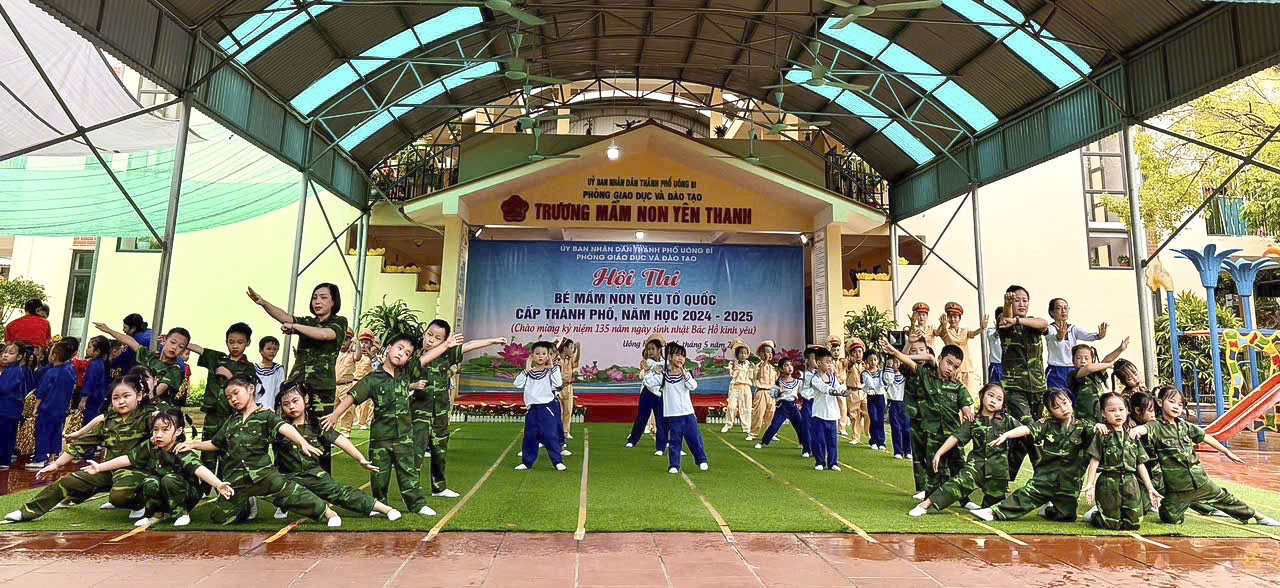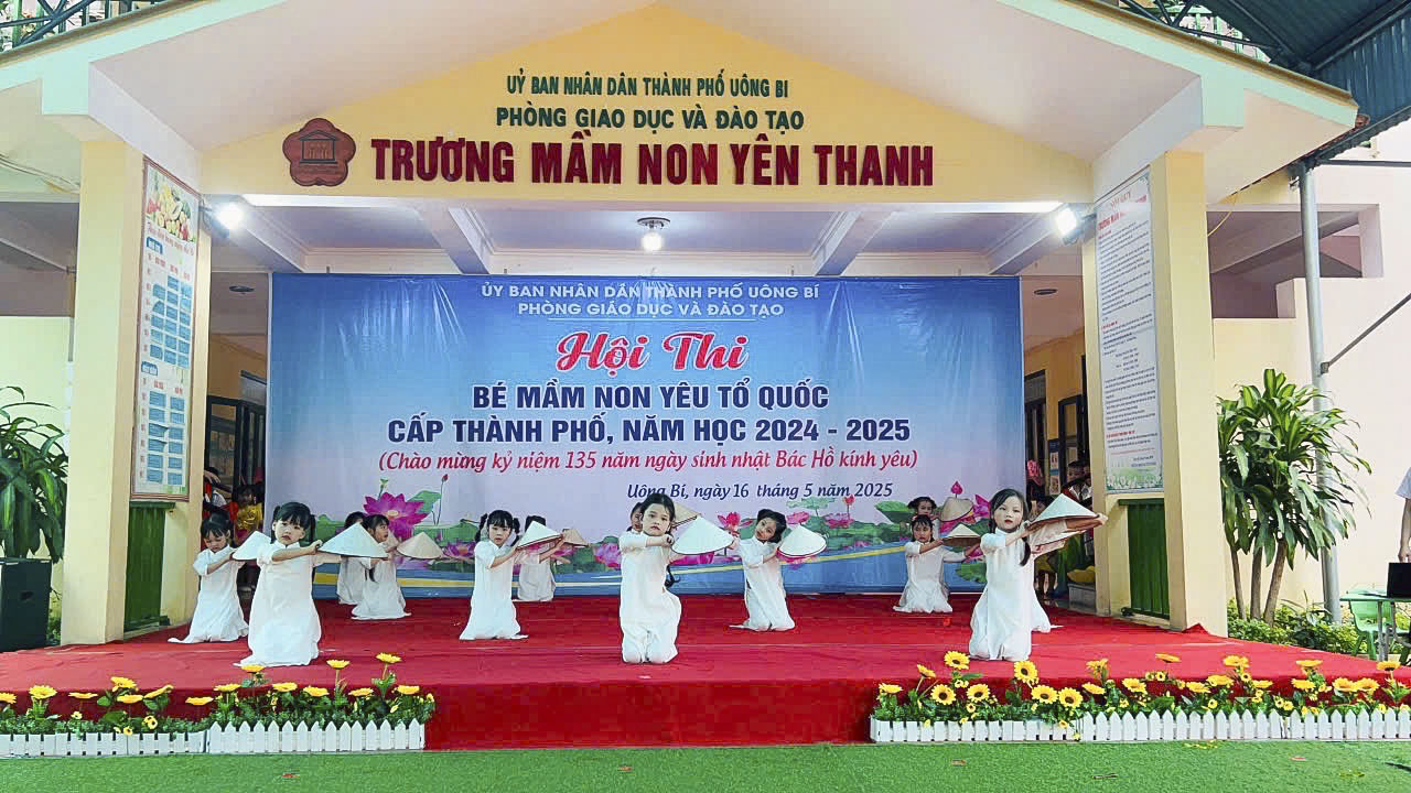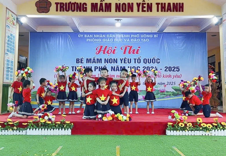 Nhân kỷ niệm 135 năm Ngày sinh Chủ tịch Hồ Chí Minh (19/5/1890 – 19/5/2025), ngày 16/5, tại Trường Mầm non Yên Thanh, Phòng Giáo dục và Đào tạo thành phố Uông Bí tổ chức Hội thi “Bé Mầm non yêu Tổ quốc” năm học 2024–2025. Tới dự có đồng chí Trần Thị Hồng Thu – Phó Trưởng Phòng Giáo dục và Đào tạo thành phố, lãnh đạo phường Yên Thanh, cùng đông đảo phụ huynh và giáo viên nhà trường.