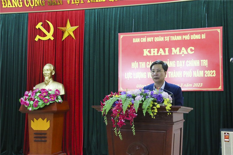 Tham gia hội thi có 27 thí sinh là Bí thư, Phó bí thư các chi bộ thuộc Đảng bộ quân sự thành phố, chính trị viên; Chính trị viên phó Ban CHQS 10 phường, xã; Chính trị viên, Chính trị viên phó Ban CHQS 4 Đại đội tự vệ thuộc các đơn vị như: Công ty Nhiệt điện Uông Bí, Công ty CP Xi măng - Xây dựng Quảng Ninh, Công ty Kho vận Đá Bạc - Vinacomin và Bệnh viện Việt Nam – Thuỵ Điển Uông Bí.