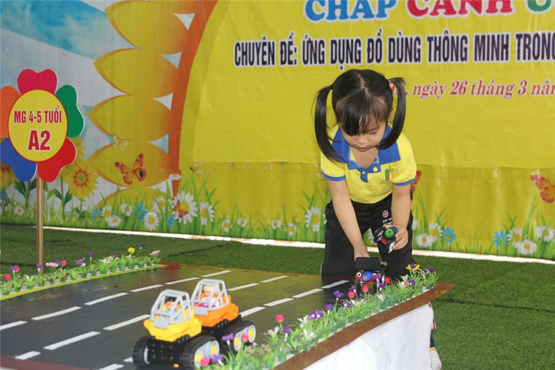 Phần thi thứ hai “Bé thông minh”, đối với khối mẫu giáo 4-5 tuổi, thành viên trong các đội cùng nhau lắp ráp bộ đồ chơi thông minh để tạo thành những phương tiện giao thông hoặc các mô hình về chủ đề giao thông. Đối với khối mẫu giáo 5-6 tuổi, trẻ sử dụng bộ đồ chơi Robot sáng tạo để lắp ráp tạo thành những sản phẩm theo chủ đề giao thông, có thể di chuyển, điều khiển và vận chuyển nguyên vật liệu mô phỏng theo yêu cầu của Ban tổ chức. Ở phần thi này, sau khi hoàn thành các sản phẩm, trẻ phải nêu được tên công trình lắp ráp cùng ý tưởng sáng tạo của mình.
