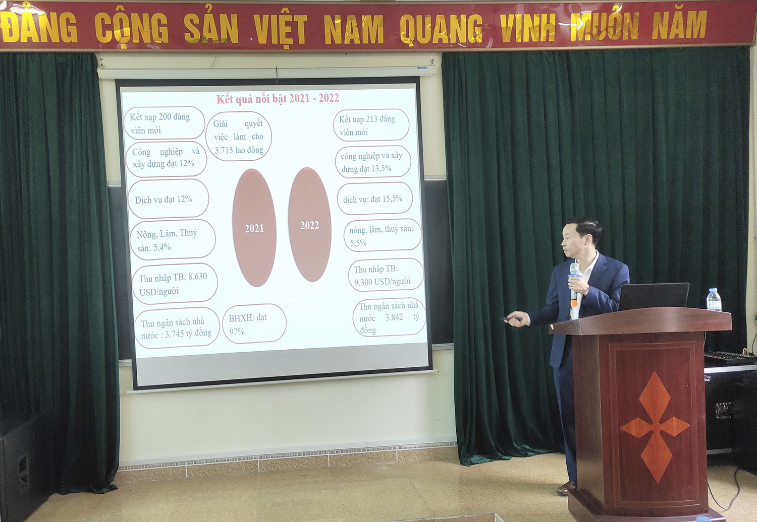 Cũng tại hội nghị, đồng chí Trưởng ban Tuyên giáo Thành uỷ, Giám đốc Trung tâm Chính trị, Chủ tịch Hội VHNT thành phố cũng báo cáo nhanh tới cán bộ, hội viên Hội văn học nghệ thuật Thành phố những kết quả nổi bật trong thực hiện nhiệm vụ phát triển kinh tế - xã hội, đảm bảo an ninh quốc phòng thành phố năm 2022.