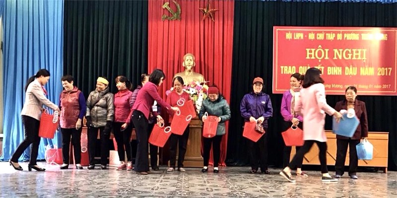 Chị Huệ cùng BCH Hội Phụ nữ phường Trưng Vương tặng làn đi chợ khuyến khích hội viên bảo vệ môi trường.