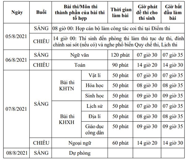 Thí sinh sẽ bắt đầu làm bài thi vào ngày mai, lịch thi cụ thể như sau: