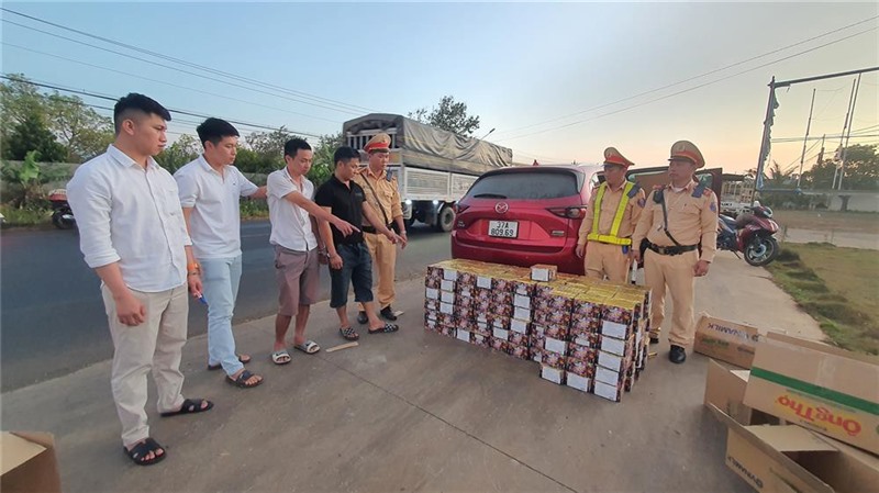 Lực lượng cảnh sát giao thông bắt giữ 2 đối tượng cùng tang vật hơn 300 kg pháo.