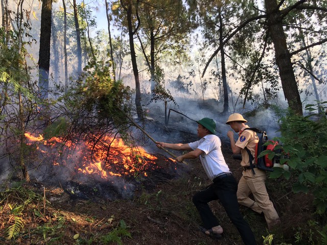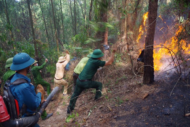 Lực lượng chức năng nhanh chóng huy động hơn 300 cán bộ, chiến sỹ công an, kiểm lâm, dân quân tự vệ và người dân tham gia dập lửa.