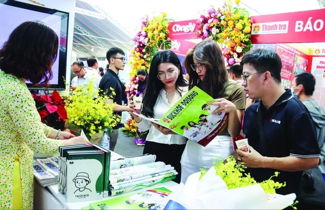 Sinh viên các trường Đại học trên địa bàn TP.HCM tham quan gian trưng bày Báo Sức khỏe và Đời sống tại Hội báo toàn quốc 2024.