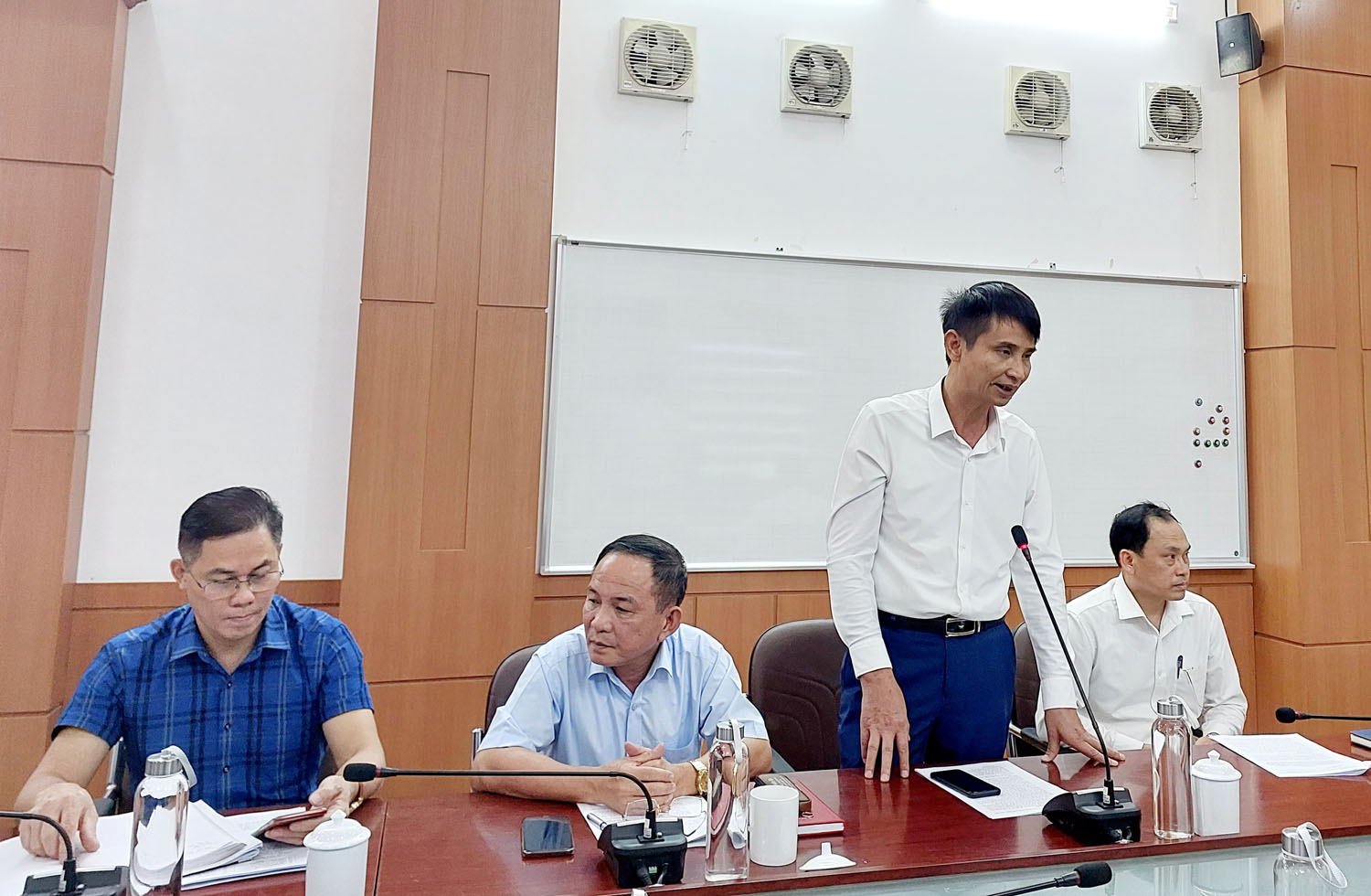 Đại diện phòng chức năng, doanh nghiệp phát biểu ý kiến tại cuộc họp.