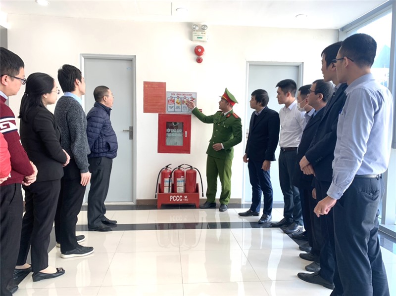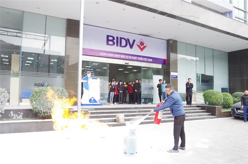 Huấn luyện phương án chữa cháy, CNCH tại Ngân hàng Đầu tư và Phát triển chi nhánh Tây Nam Quảng Ninh