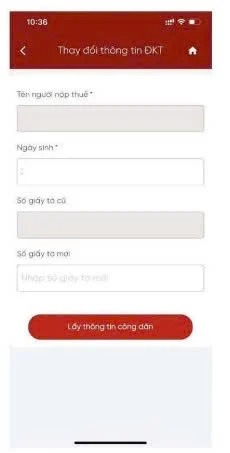 - Trường hợp không nhận được thông tin công dân từ Cơ sở dữ liệu Quốc gia về dân cư. Hiển thị màn hình thông báo "Thông tin NNT không có trên Cơ sở DLQG về dân cư, NNT liên hệ cơ quan công an để cập nhật thông tin vào Cơ sở DLQG về dân cư