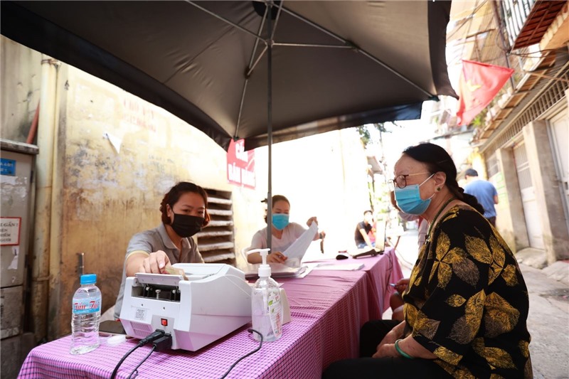 Cán bộ bưu điện Hà Nội chi trả lương hưu, trợ cấp BHXH cho người dân. Ảnh: Hải Nguyễn