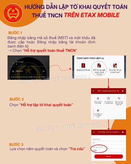 Chi cục Thuế khu vực 1 hướng dẫn lập tờ khai quyết toán thuế thu nhập cá nhân trên eTax Mobile.