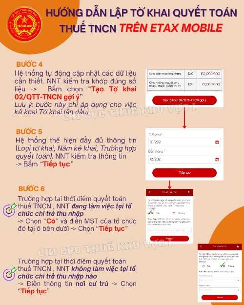Các bước hướng dẫn lập tờ khai Quyết toán thuế thu nhập cá nhân trên eTax Mobile như sau: