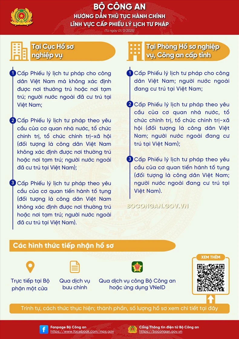 Thực hiện chức năng, nhiệm vụ, quyền hạn, cơ cấu tổ chức của Bộ Công an và Công an địa phương theo hướng sắp xếp tinh gọn từ 3 cấp thành 2 cấp (Công an cấp tỉnh và Công an cấp xã), Bộ Công an hướng dẫn các cơ quan, tổ chức, cá nhân thực hiện các thủ tục hành chính thuộc thẩm quyền giải quyết của Bộ Công an từ ngày 1/3/2025 như sau: