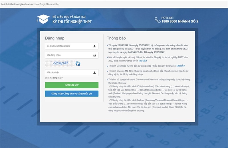 Sau khi nhập đầy đủ các thông tin nêu trên, thí sinh sẽ biết được điểm thi tốt nghiệp Trung học phổ thông năm 2022 của mình. Thí sinh chưa có Mã đăng nhập vui lòng liên hệ Điểm tiếp nhận hồ sơ nơi nộp hồ sơ đăng ký dự thi để lấy mã đăng nhập.