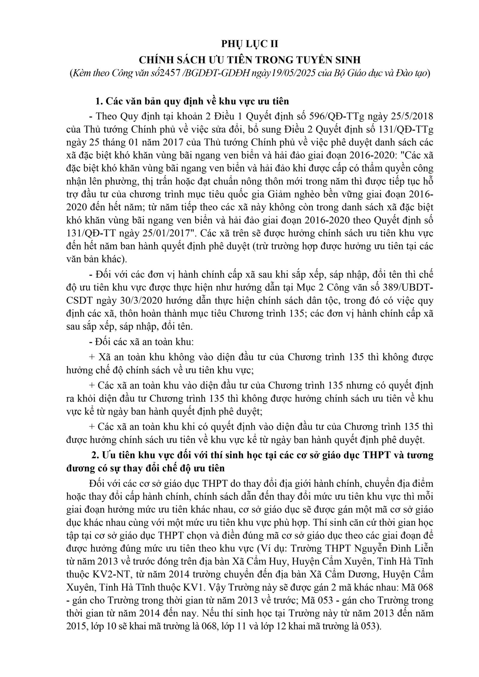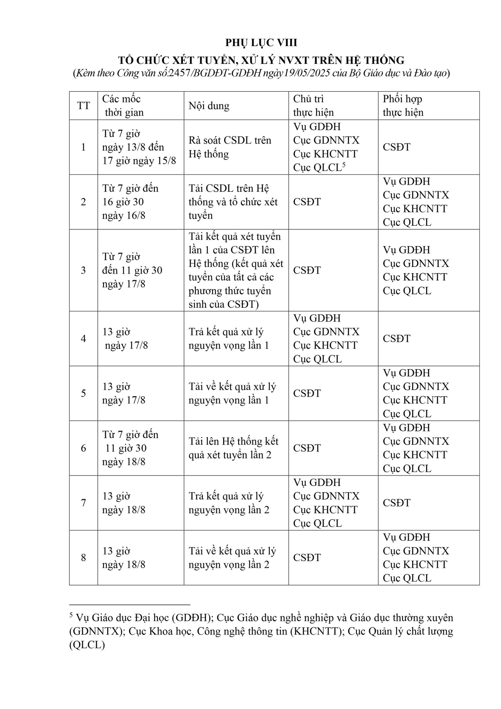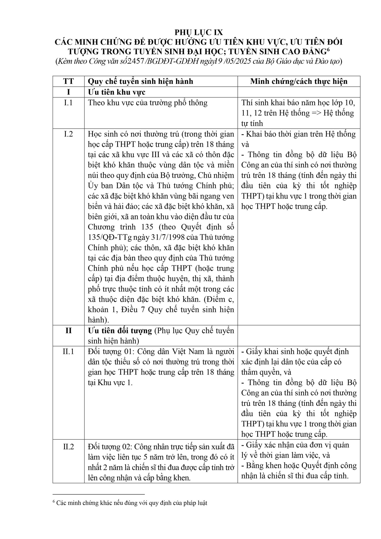 Bộ Giáo dục và Đào tạo ban hành Công văn 2457/BGDĐT-GDĐH ngày 19/5/2025 hhướng dẫn tuyển sinh đại học, tuyển sinh cao đẳng năm 2025.