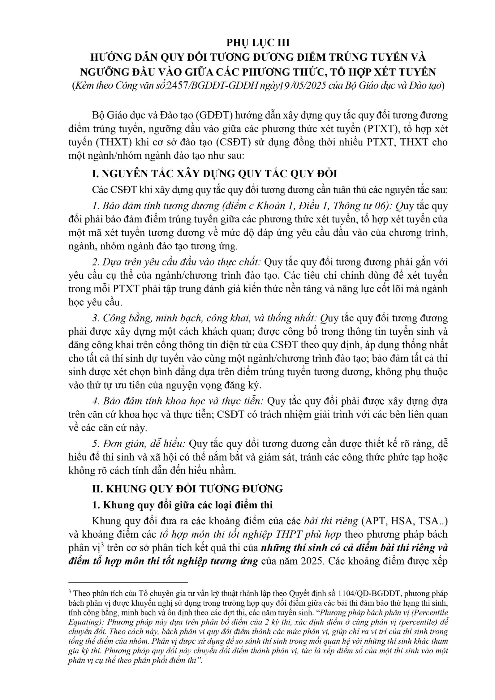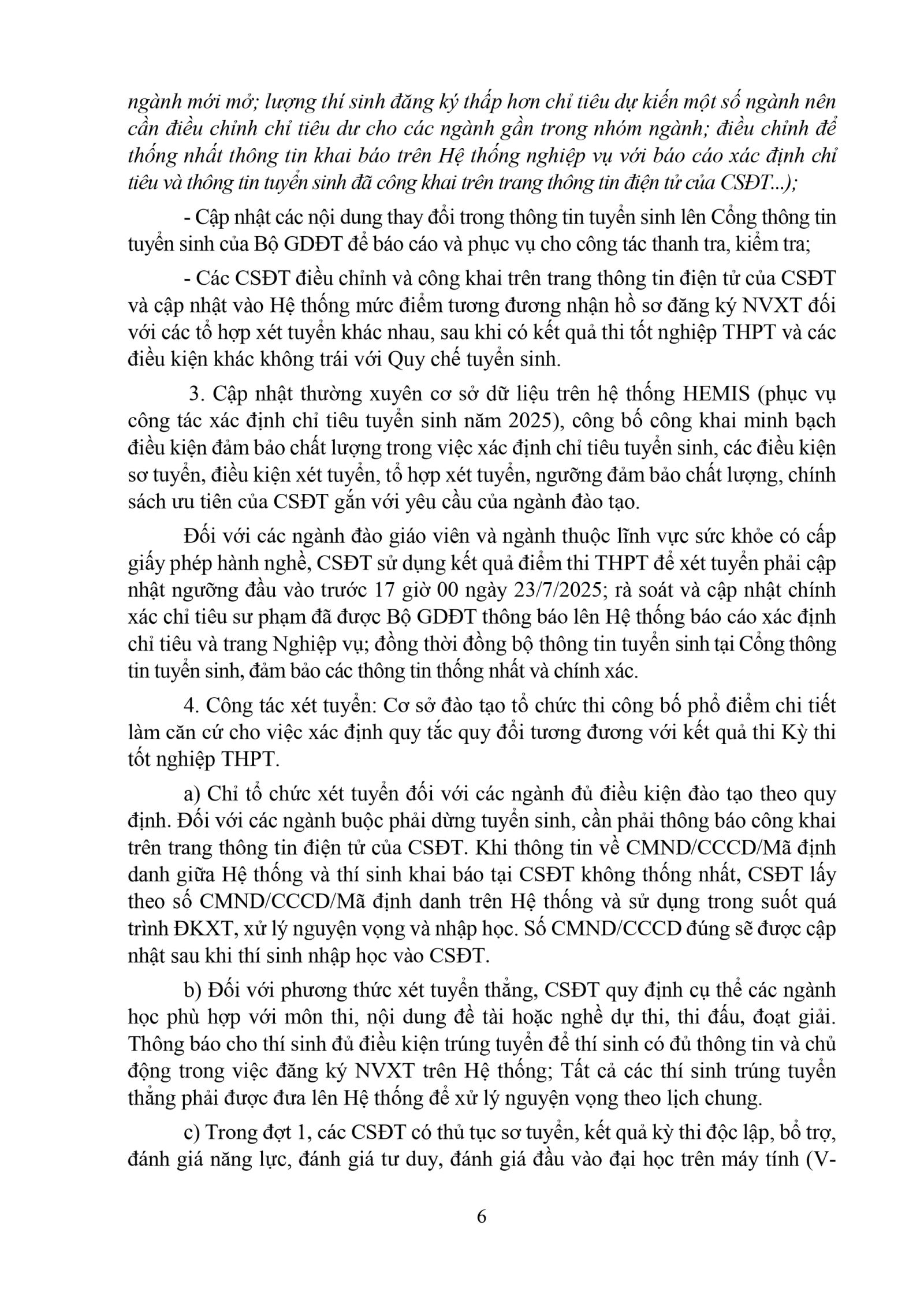 TOÀN VĂN: Công văn 2457/BGDĐT-GDĐH Hướng dẫn tuyển sinh đại học, cao đẳng năm 2025