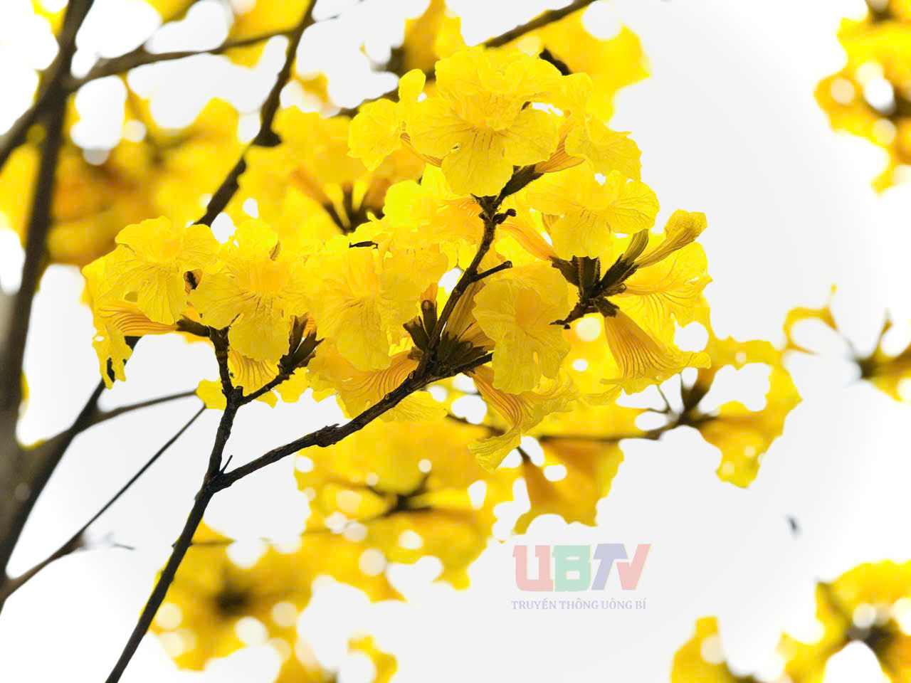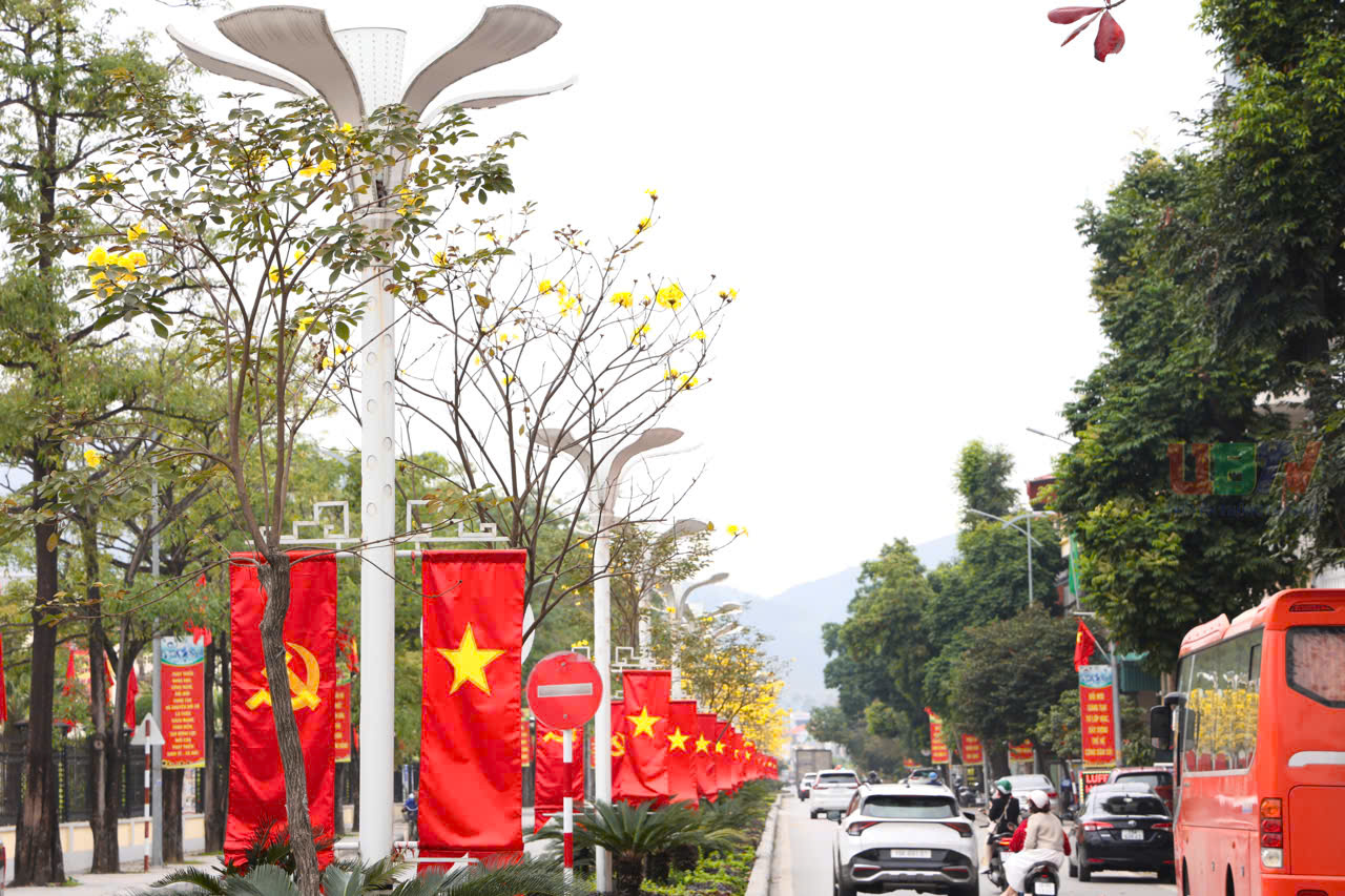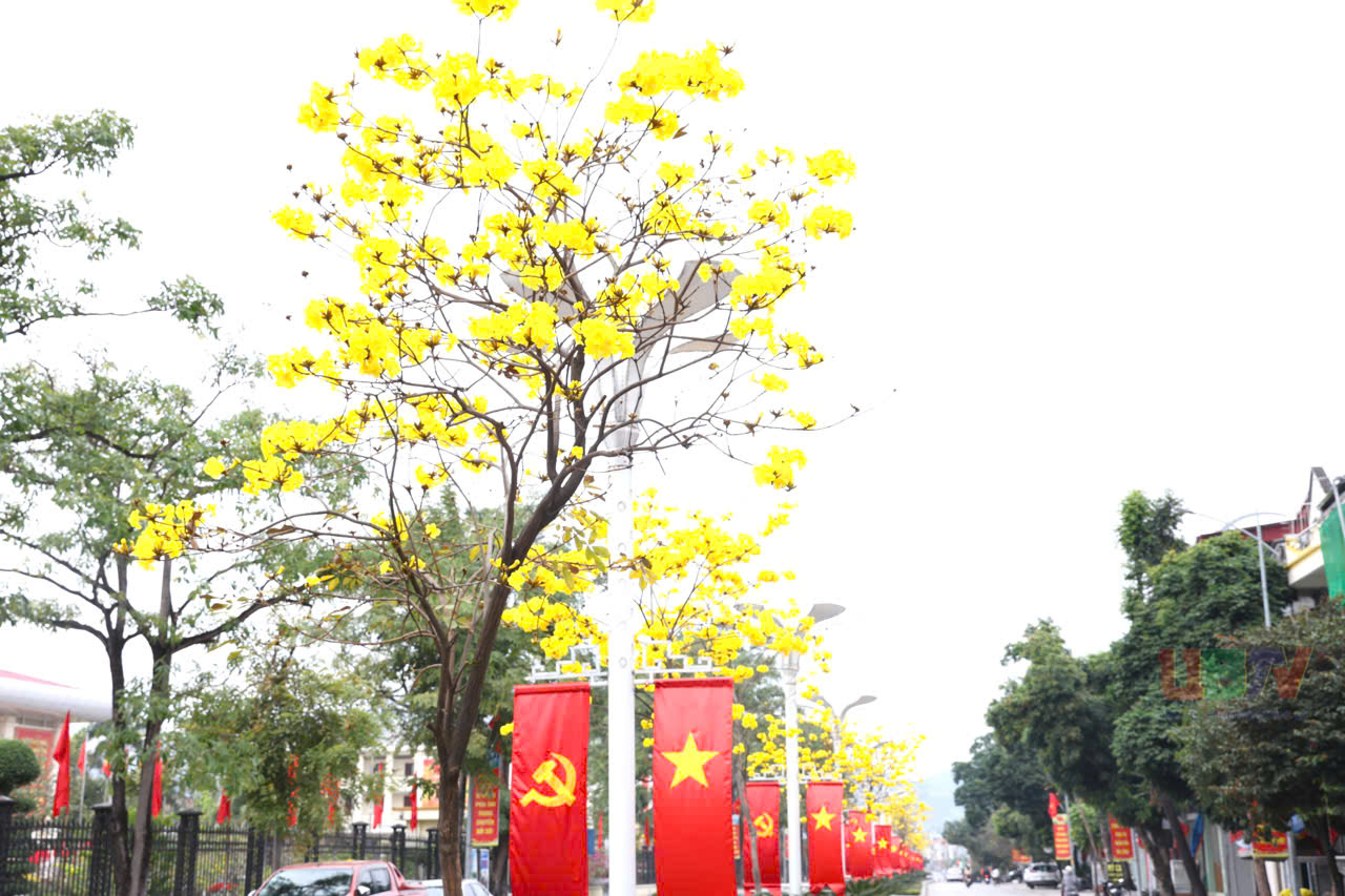 Hàng cây phong linh khoe sắc hoa rực rỡ trong ngày đầu xuân mới tạo nên khung cảnh tươi đẹp, tràn đầy sức sống, điểm xuyết cho bức tranh Uông Bí 4 mùa hoa.