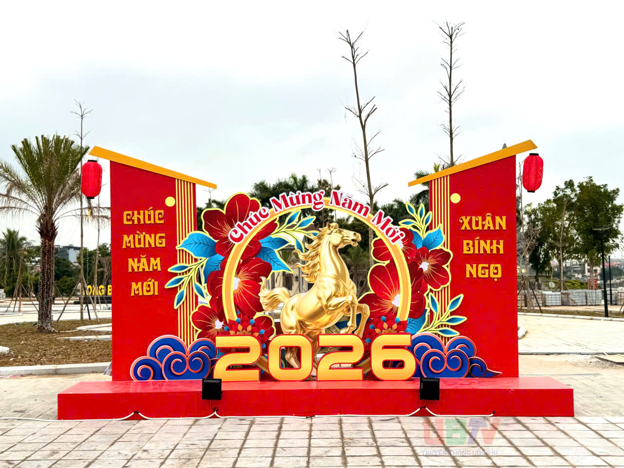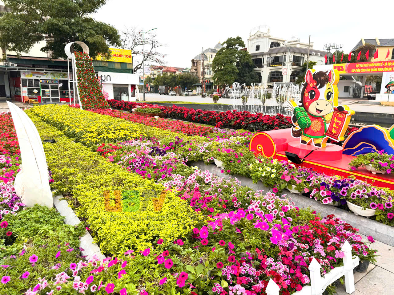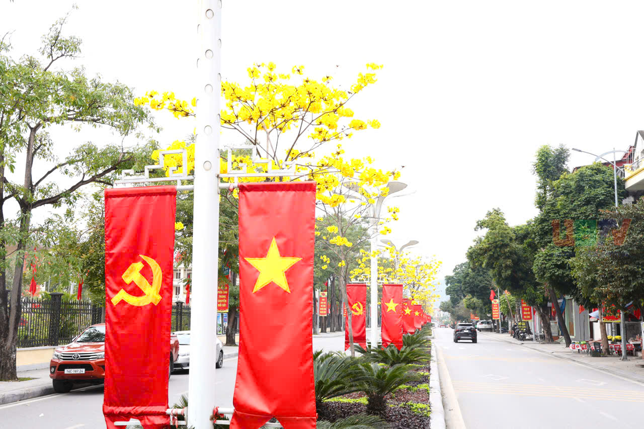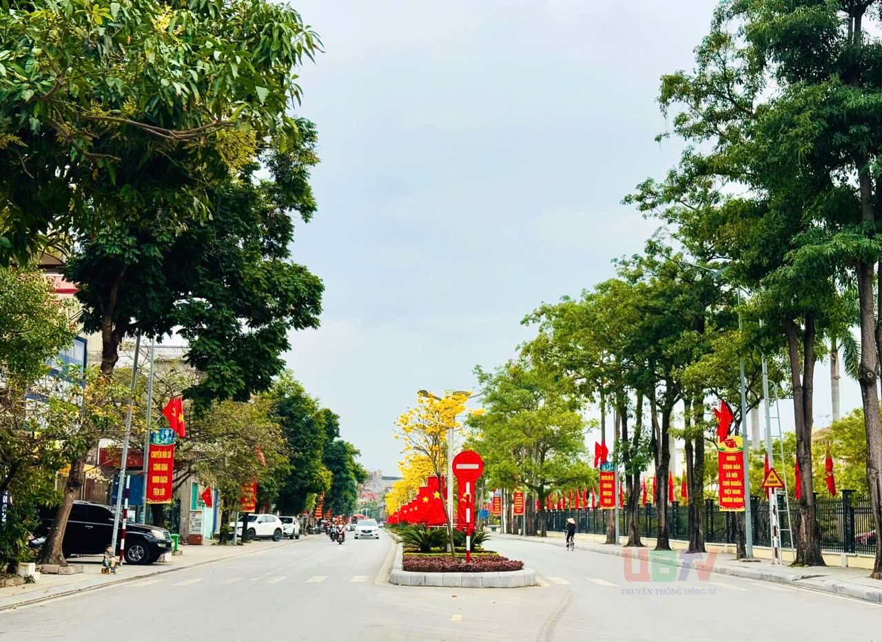 Phường Uông Bí bố trí nhiều cụm trang trí tuyên truyền để người dân check-in chụp ảnh.