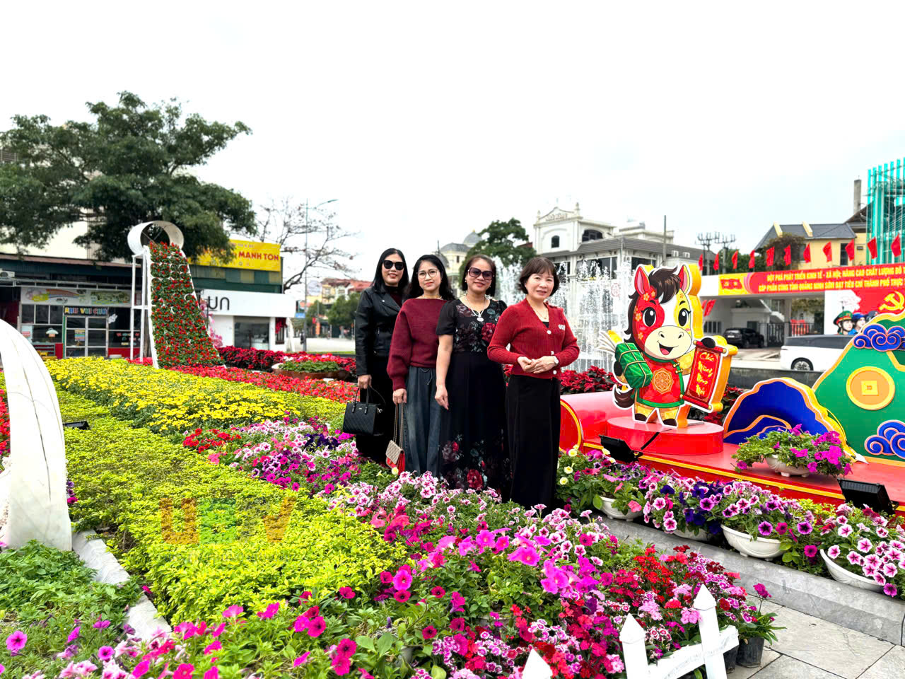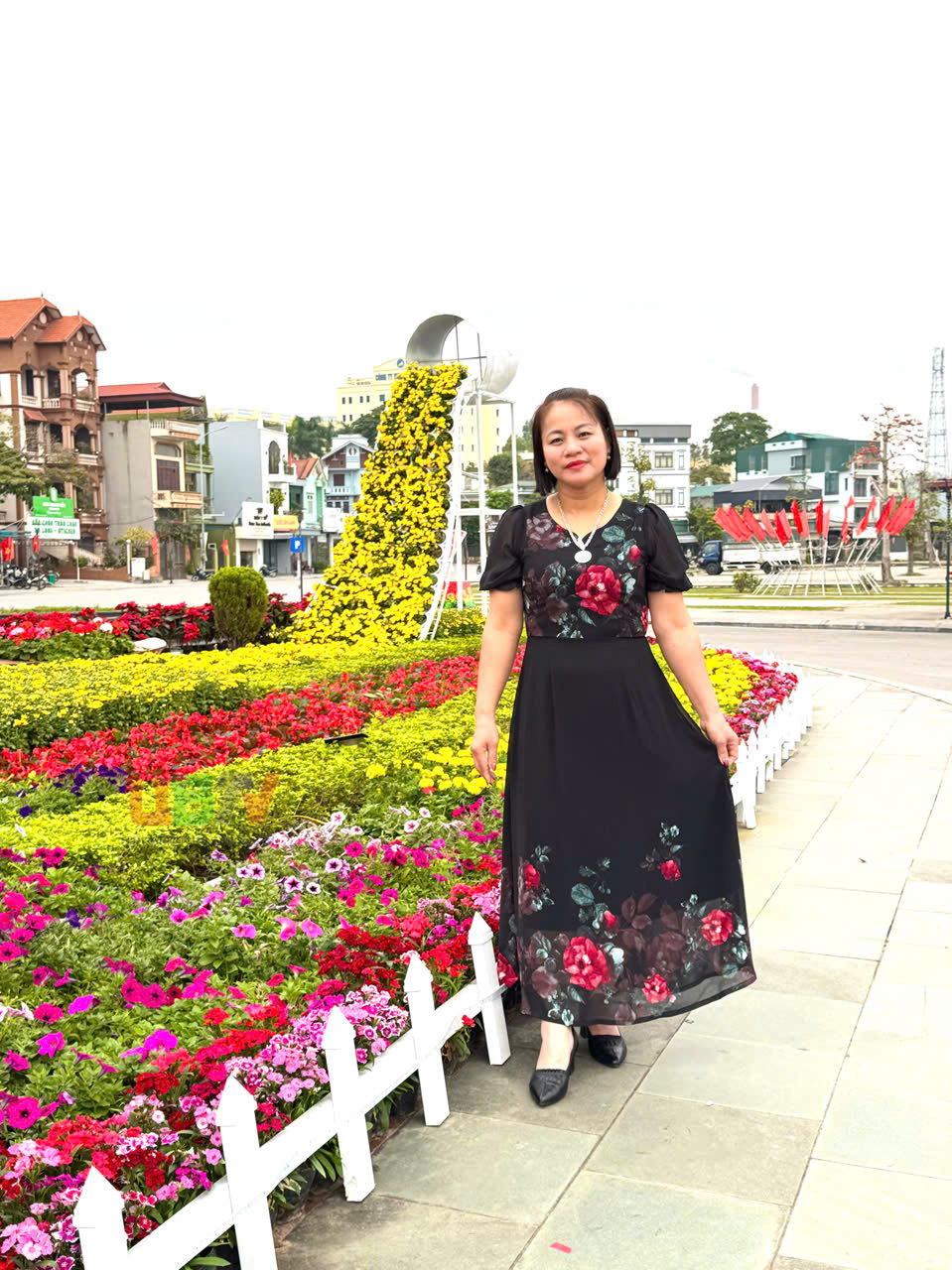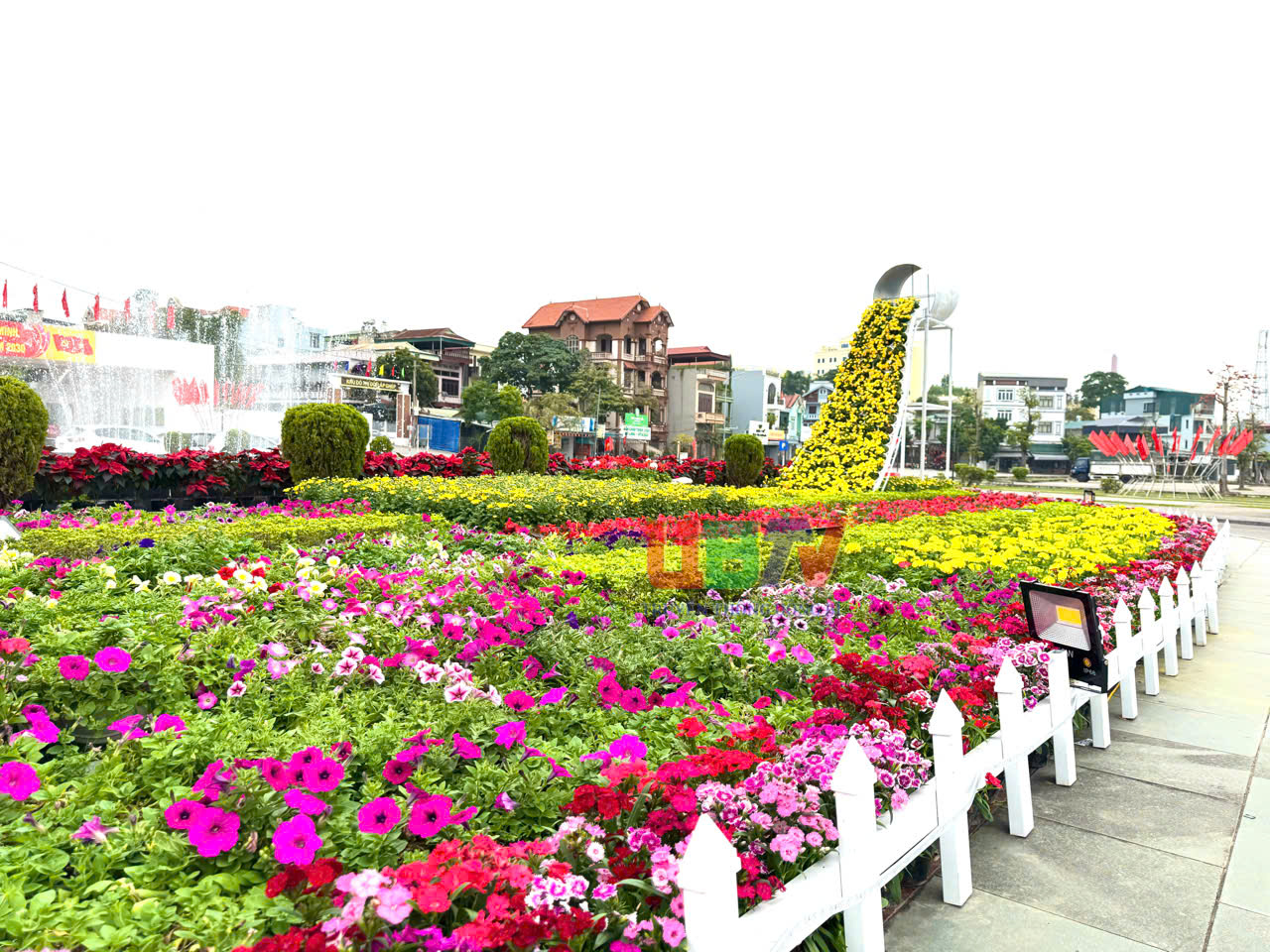 Phường Uông Bí bố trí nhiều cụm trang trí tuyên truyền để người dân check-in chụp ảnh.