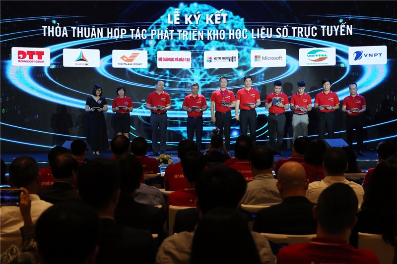 Ký kết phát triển Kho học liệu số, ngày 1/10. Ảnh: VGP/Đình Nam