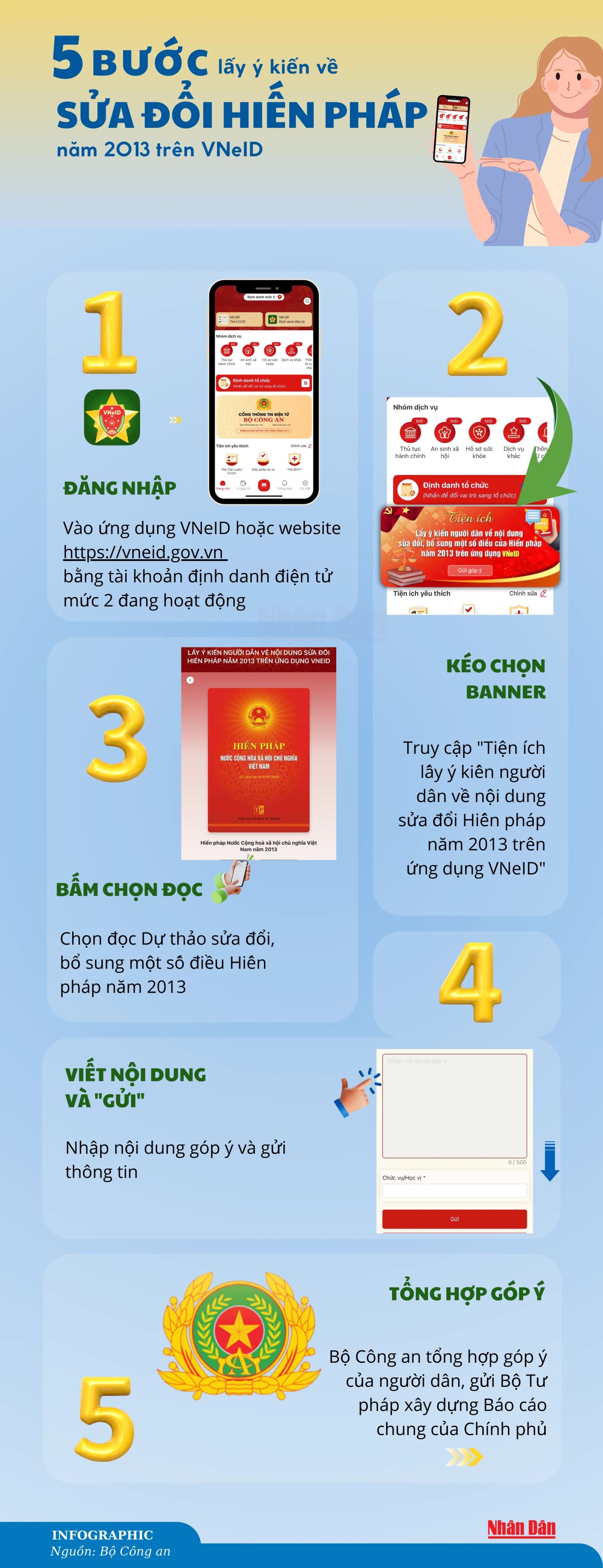 [Infographic] Các bước lấy ý kiến về sửa đổi Hiến pháp năm 2013 trên VNeID