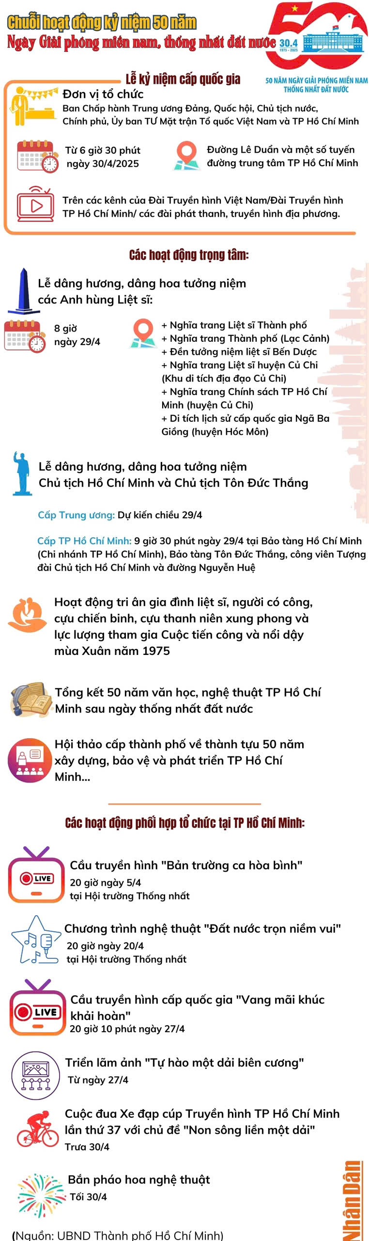 [Infographic] Chuỗi hoạt động kỷ niệm 50 năm Ngày Giải phóng miền nam, thống nhất đất nước