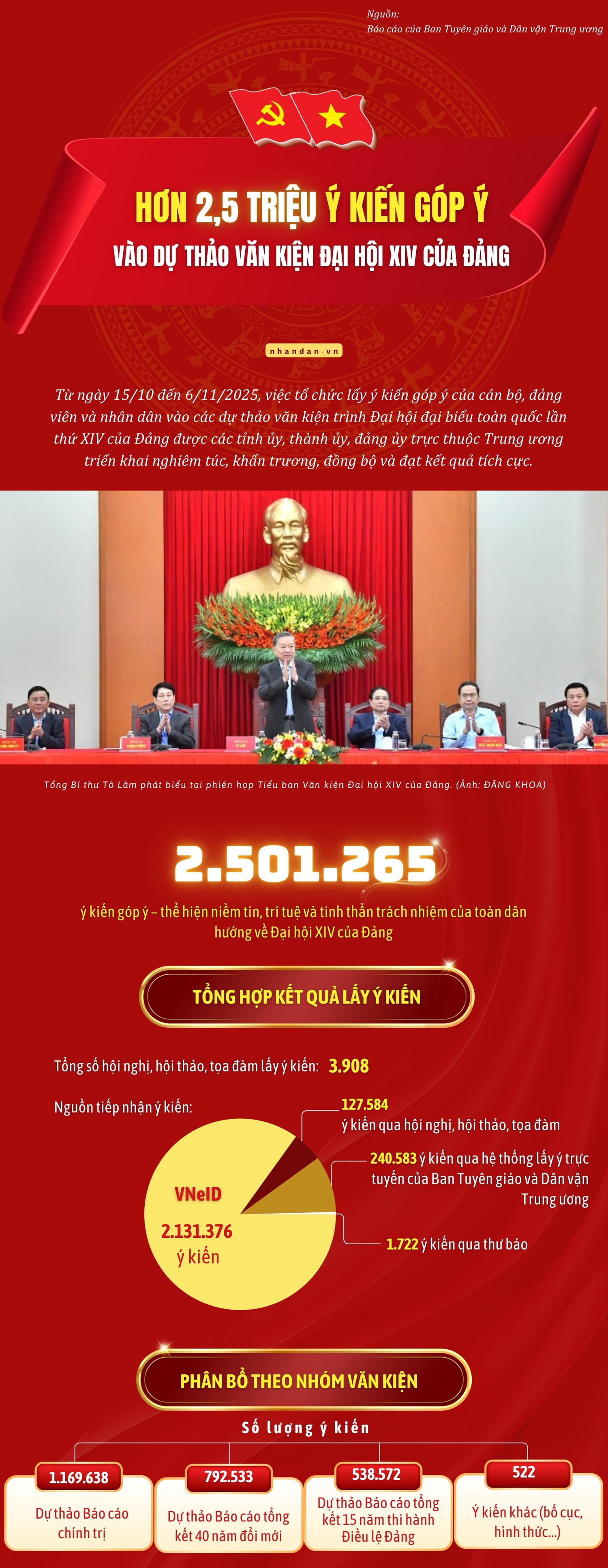 [Infographic] Hơn 2,5 triệu ý kiến góp ý vào dự thảo Văn kiện Đại hội XIV của Đảng
