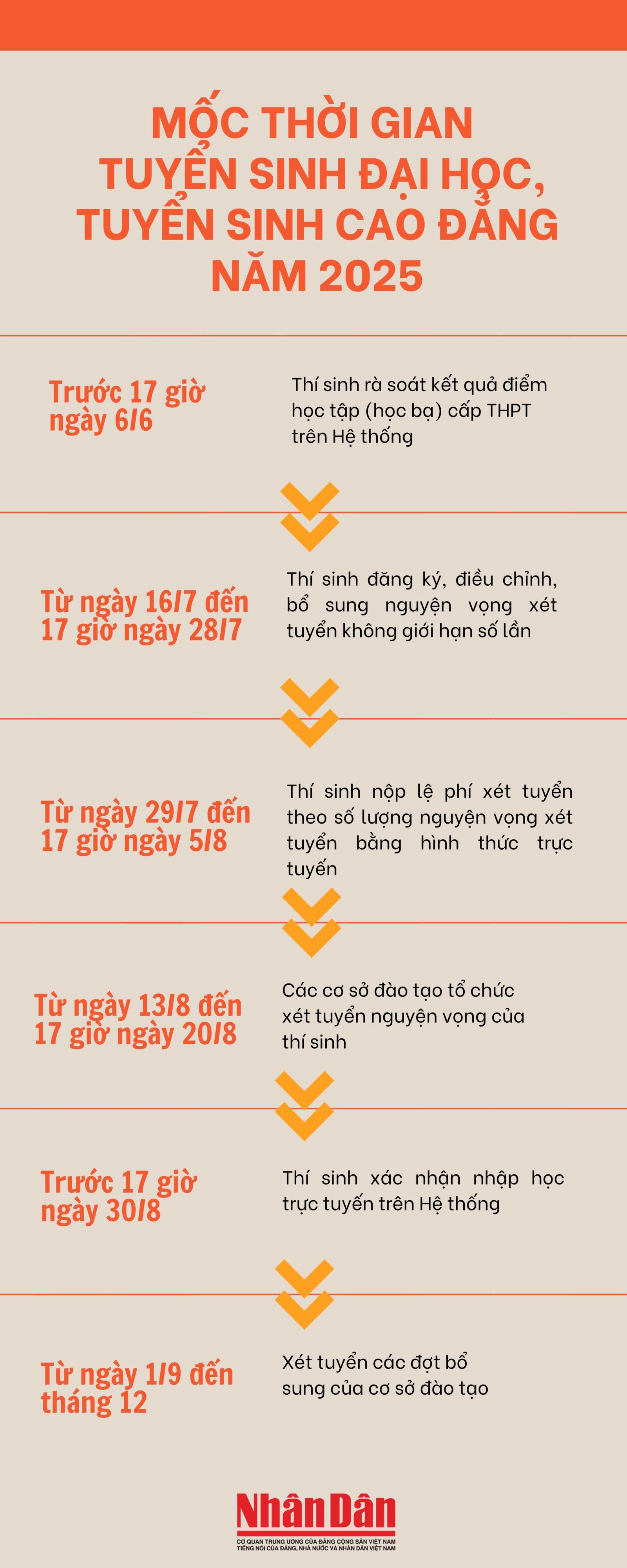 [Infographic] Mốc thời gian tuyển sinh đại học, cao đẳng năm 2025
