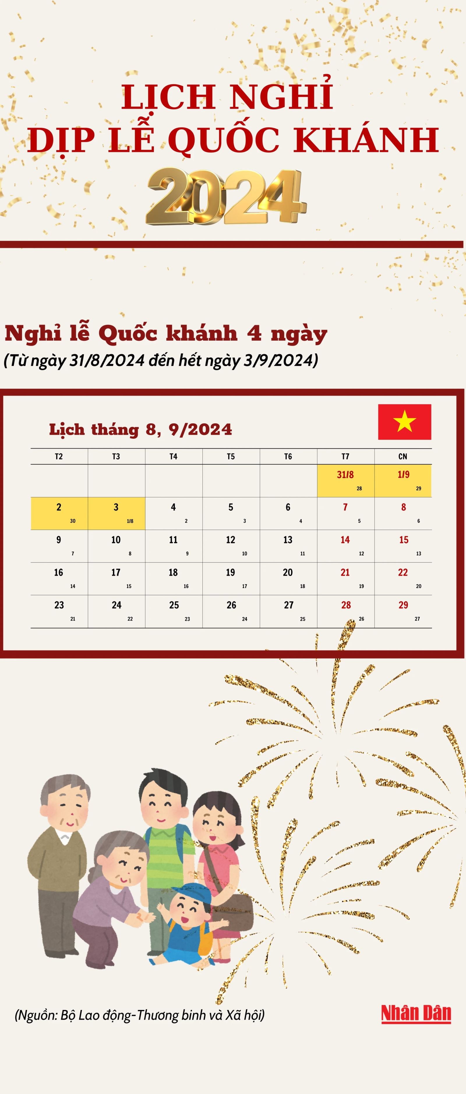[Infographic] Người lao động nghỉ 4 ngày dịp lễ Quốc khánh năm 2024