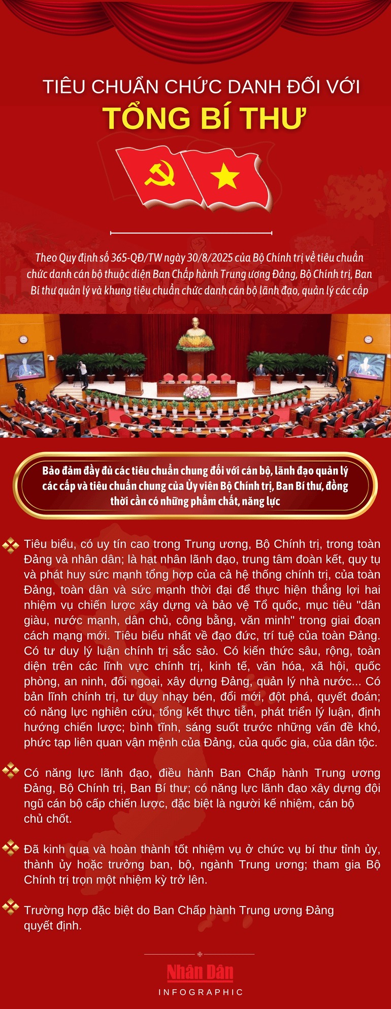 [Infographic] Tiêu chuẩn cụ thể đối với chức danh Tổng Bí thư theo Quy định 365-QĐ/TW