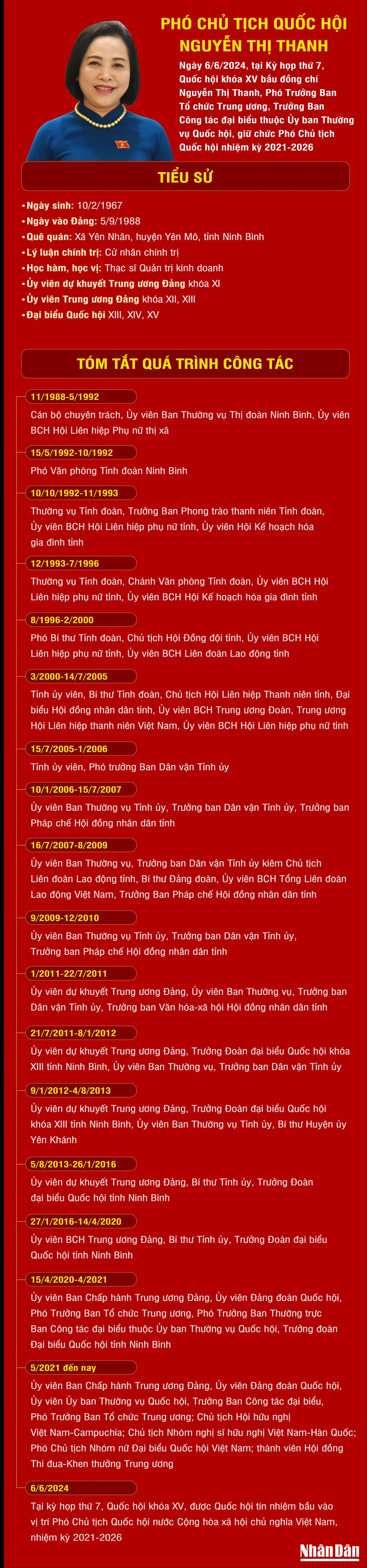 [Infographic] Tiểu sử Phó Chủ tịch Quốc hội Nguyễn Thị Thanh