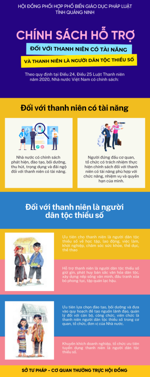 Infographic tuyên truyền, phổ biến pháp luật cho thanh, thiếu niên: Chính sách hỗ trợ đối với thanh niên có tài năng và thanh niên là người dân tộc thiều số