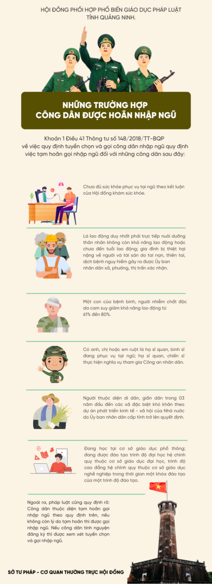Infographic tuyên truyền, phổ biến pháp luật cho thanh, thiếu niên: Những trường hợp công dân được hoãn nhập ngũ