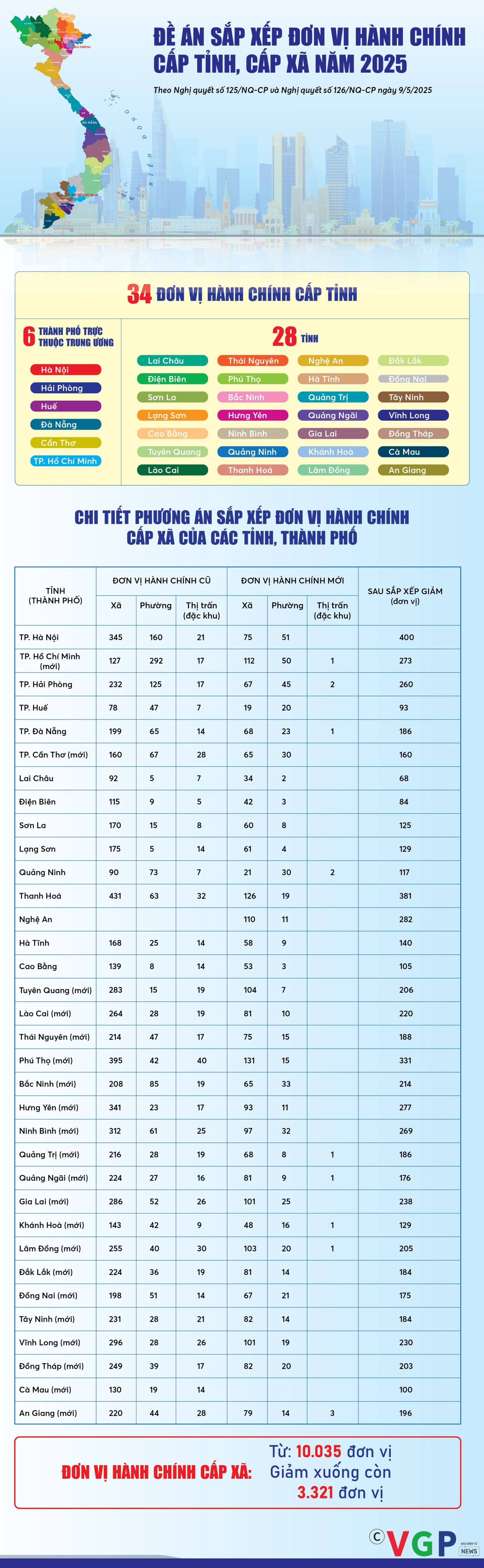 Infographics: Đề án sắp xếp đơn vị hành chính cấp tỉnh, cấp xã năm 2025