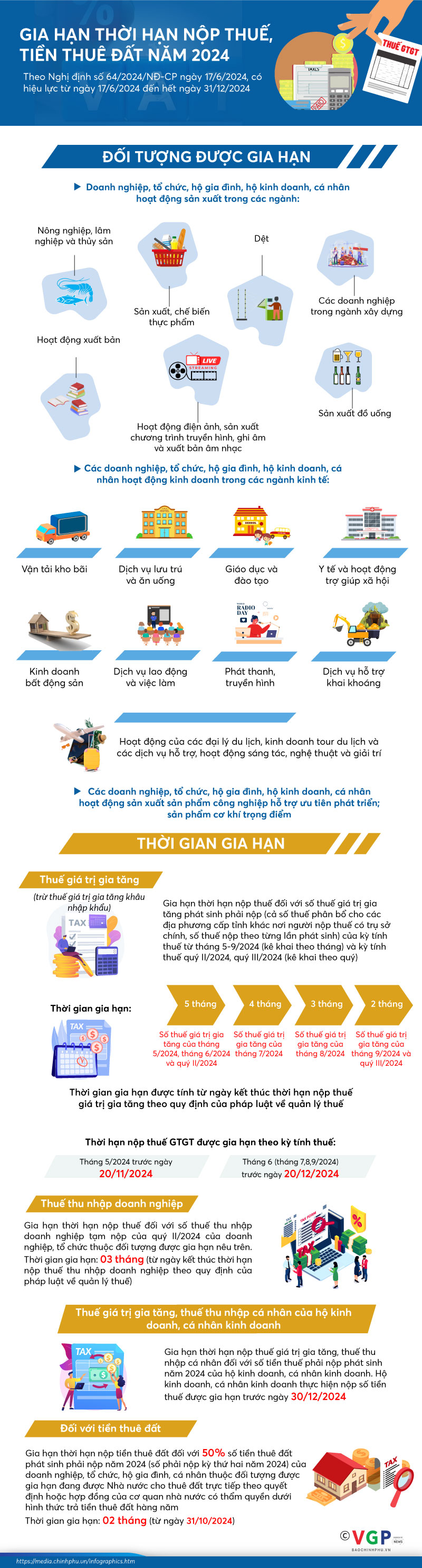 Infographics: Đối tượng được gia hạn nộp thuế, tiền thuê đất năm 2024