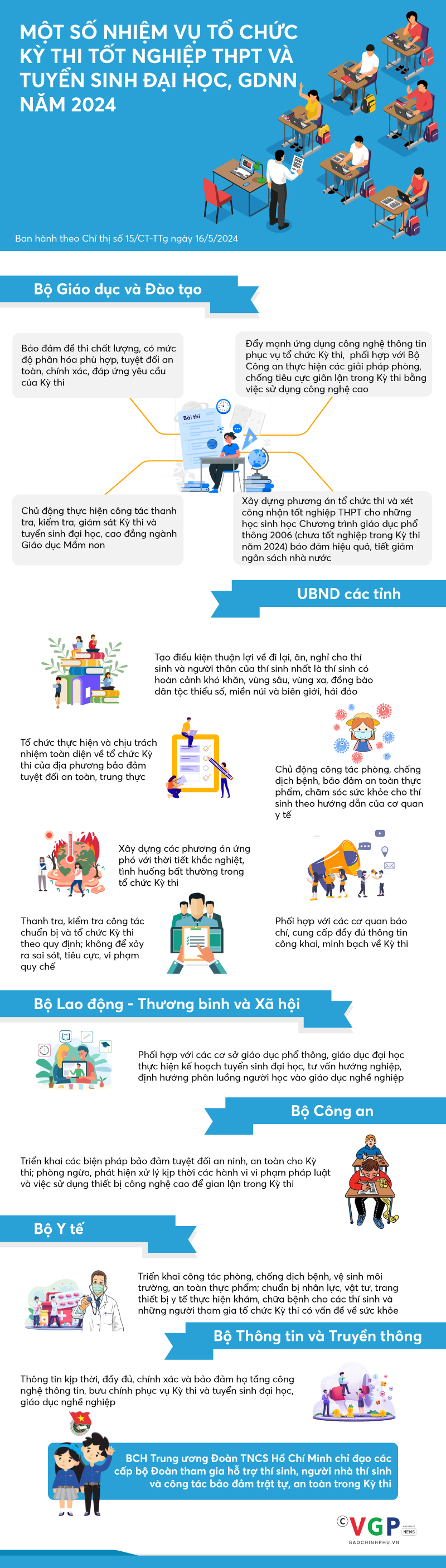 Infographics: Một số nhiệm vụ tổ chức Kỳ thi tốt nghiệp THPT và tuyển sinh đại học năm 2024