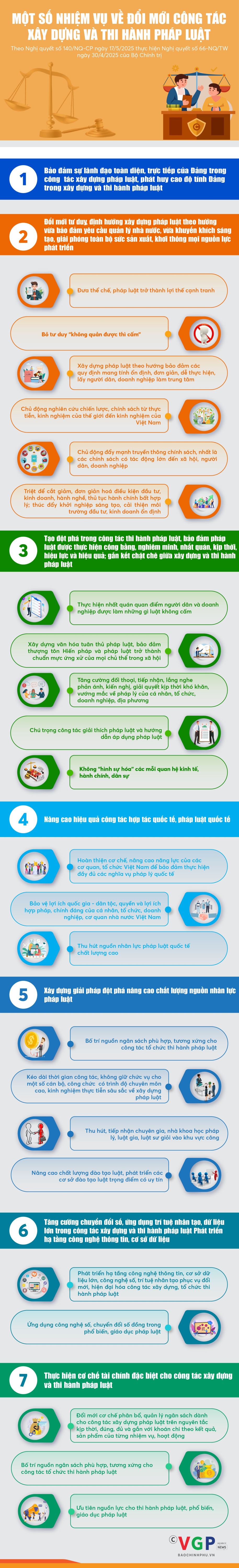 Infographics: Một số nhiệm vụ về đổi mới công tác xây dựng và thi hành pháp luật