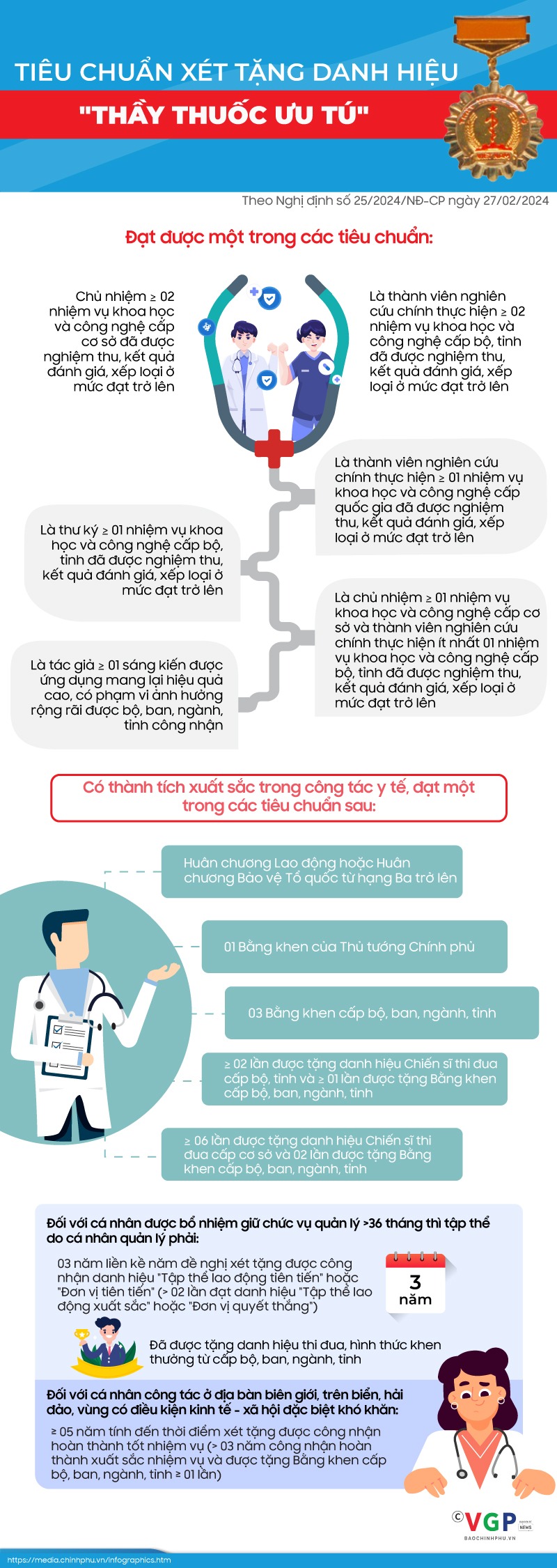 Infographics: Tiêu chuẩn xét tặng danh hiệu "Thầy thuốc ưu tú"
