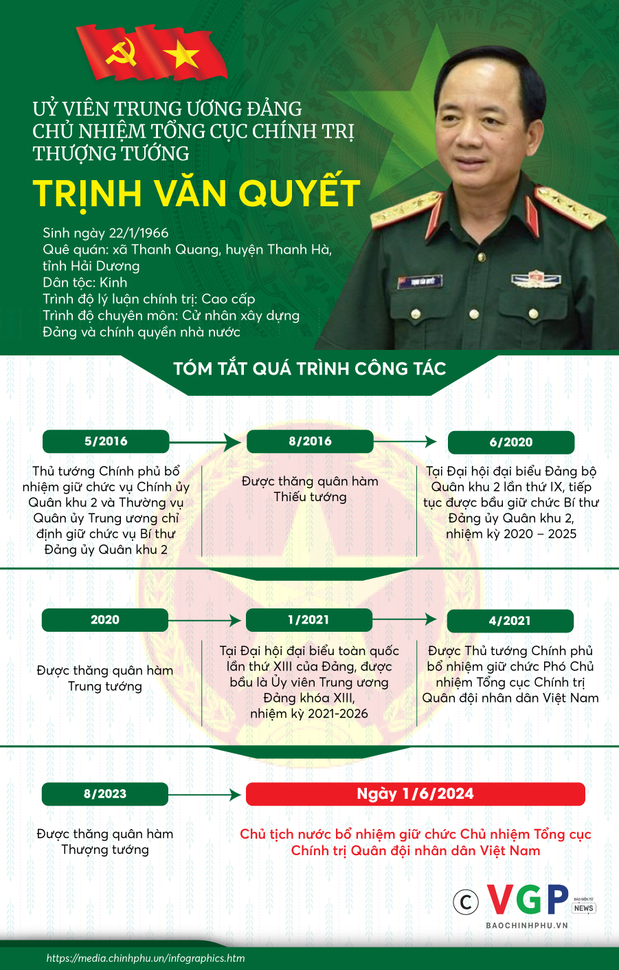 [INFOGRAPHICS] Tóm tắt tiểu sử tân Chủ nhiệm Tổng cục Chính trị Trịnh Văn Quyết